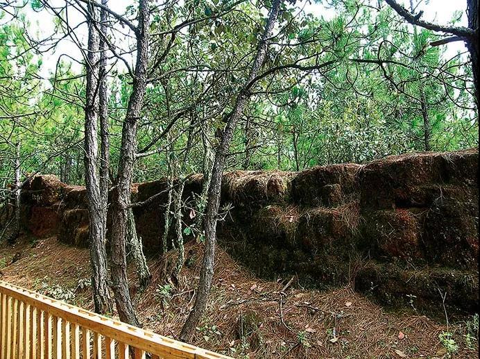 方山诸葛营遗址,就是当年诸葛亮安营扎寨留下的遗迹,虽经千年风雨侵蚀,但营盘残痕仍依稀可见。遗址分三道城墙,刚好扼住滇蜀古驿道咽喉,城墙长356米,高约3米,厚2.4米,用粘土夯成,墙外有壕堑。三国至今,1800多年过去了,诸葛大营城墙遗址年久失修已基本淤平,但这些残垣断壁却印证着诸葛营悠久的历史。2012年1月,方山诸葛营遗址被公布为云南省重点文物保护单位。