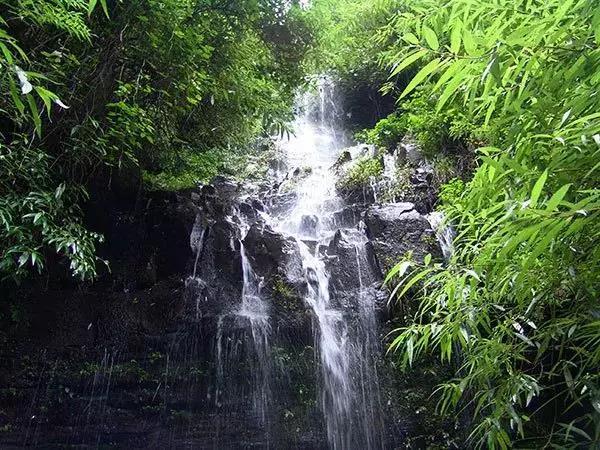 珍珠滴水岩位于仙人谷中,泉水自山岩涌出,飞流直下,溅起万斛珍珠。若遇夏秋时节,山水大增,则瀑布泉流水跌入岩下深潭,一片轰鸣,震耳欲聋,潭上水雾升起,在阳光照射下折射出道道彩虹,蔚为大观。