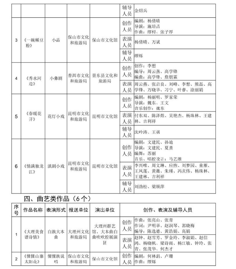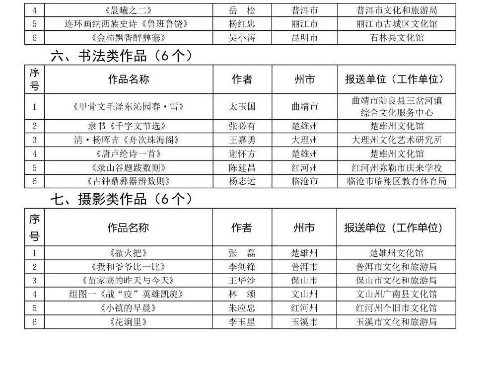 经专家评委和群众评委严格评审,最终42件作品荣获第四届云南省群众文化“彩云奖”,目前正在公示,公示期从10月26日至11月1日。