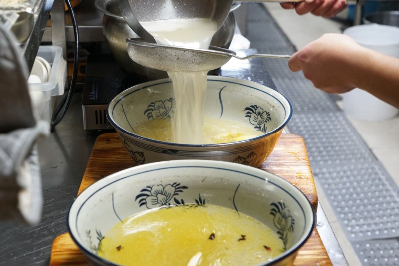 众所周知,过桥米线特色在汤。按照传统的熬汤技艺,会采用壮鸡、老鸭、大鹅、猪骨等食材进行熬制,最后所有的食材精髓融于一锅,烫出米线深处的精彩,给人舌尖上的温润与妥帖。