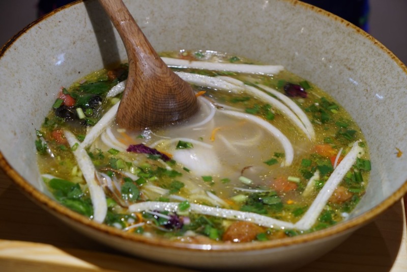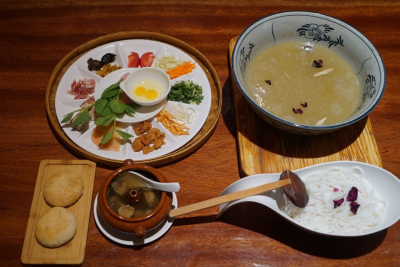 为了更好诠释过桥米线的风味,芸南道主打土鸡过桥米线、火腿过桥米线、野生菌过桥米线三款餐品。其中,土鸡是选用放养10个月以上怒江独龙鸡,确保肉香且有营养;火腿是选用三年以上的鲜宣威腿,肥瘦适中,让汤汁口感层次更丰富;野生菌则以应季菌类为主,比如:松茸、松露、竹荪、虫草花……野生菌的鲜嫩,让米线更加顺滑有味。